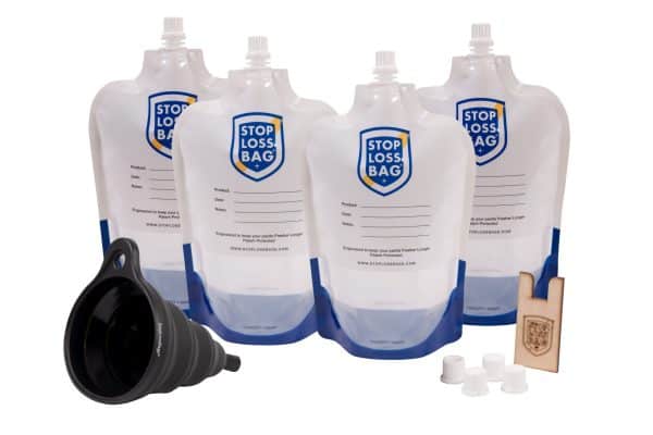 Bundle #1: 4-pack of StopLossBags®, Funnel, 4 extra caps and filler clip