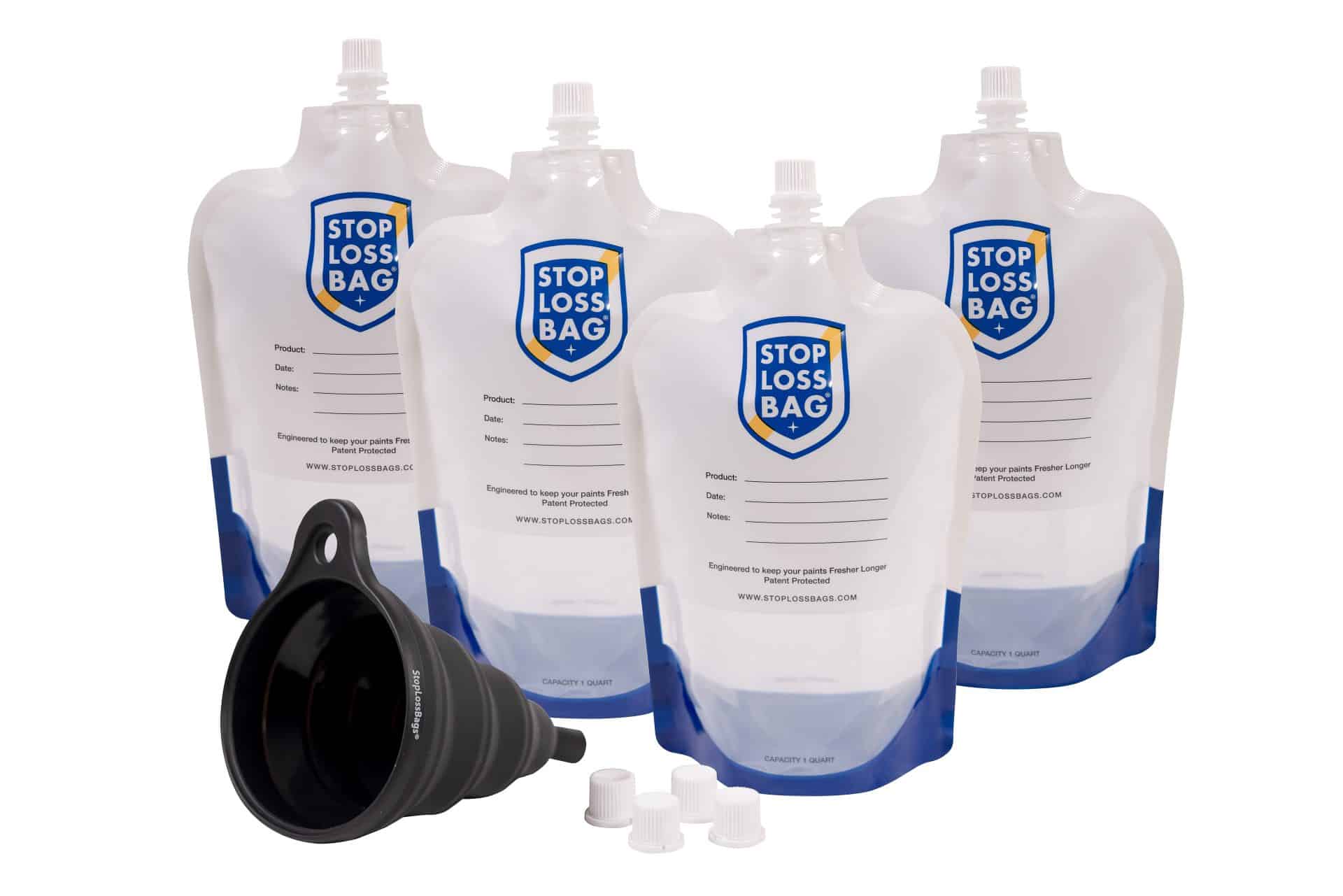 4-Pack StopLossBags® with funnel and 4-extra caps.
