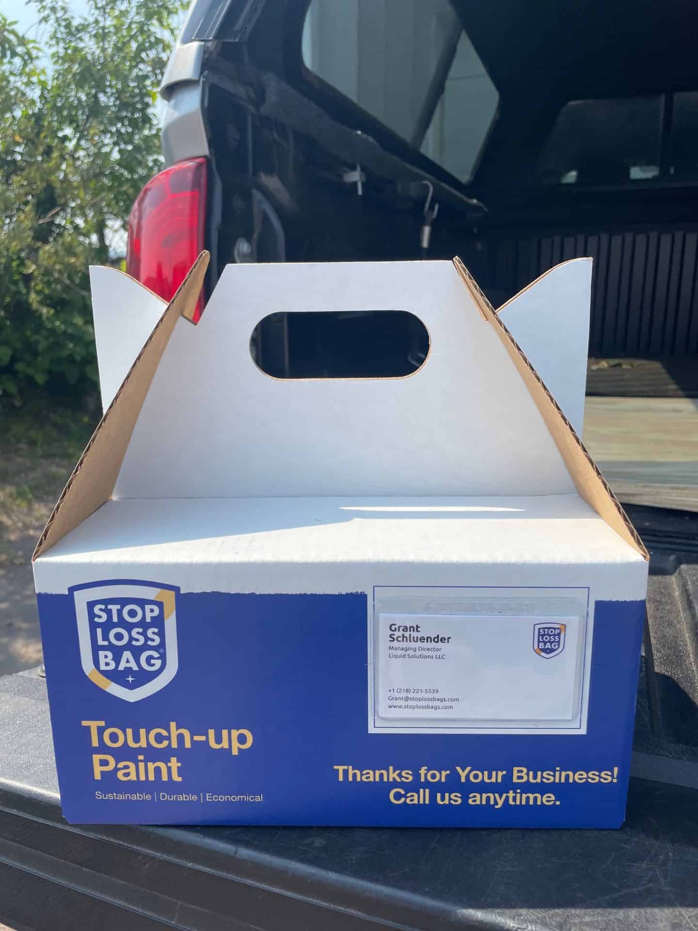 It’s more than just a great way to organize left-over paint for clients; it’s a final thank-you gift, a calling card of your quality work and service, encouraging them to spread the word about you. Each box has a sleeve to leave your business card for return business and can hold up to 6 Sampler StopLossBags for your customers future touch-up needs.
