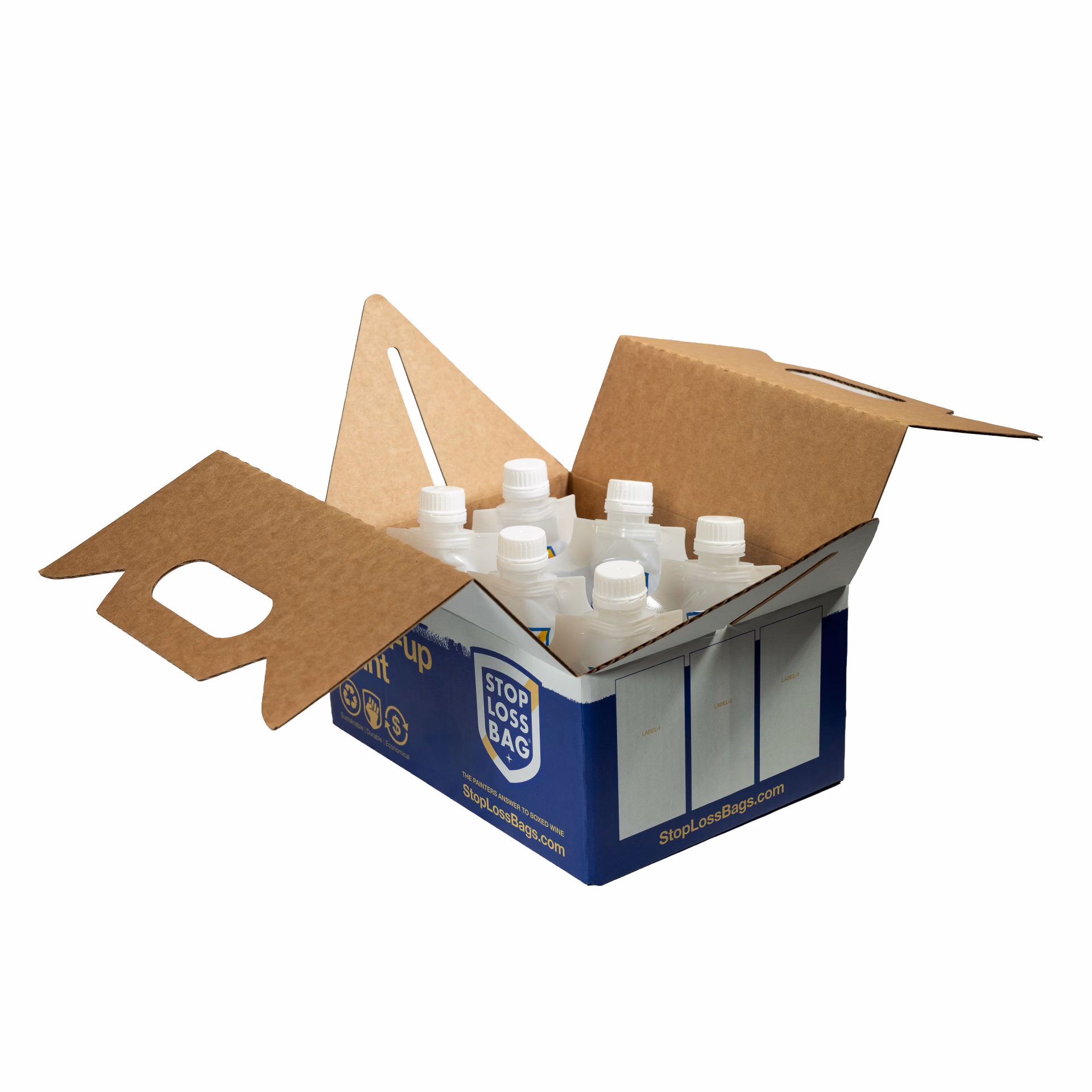 1 Gable-Topped Box, 8-6 oz Sampler™ Bags w/ caps, 1 Funnel, 1 Filler Clip